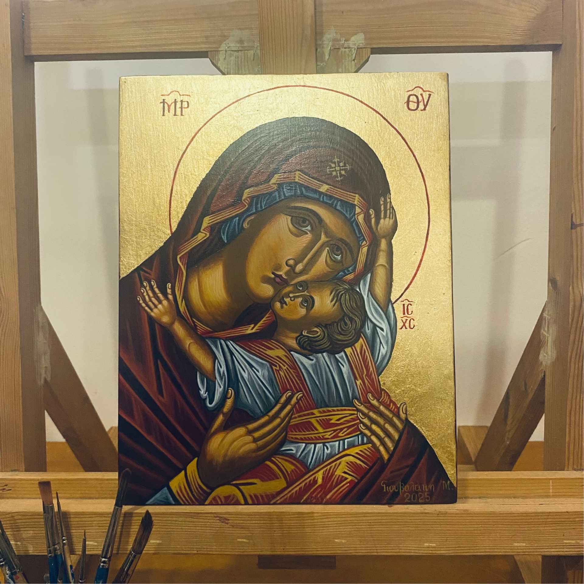 Χειροποίητη αγιογραφία σε φυσικό ξύλο, με φύλλο χρυσού 22K, σε επιλεγμένες διαστάσεις.
