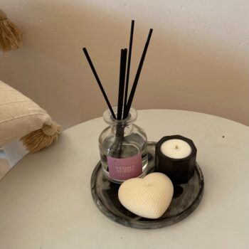 Το κερί μας είναι φυσικό, αρωματικό και απολύτως φιλικό προς το περιβάλλον. Κατασκευάζεται από αγνά υλικά, για να γεμίσει τον χώρο σου με μια ατμόσφαιρα χαλάρωσης και διακριτικής πολυτέλειας.