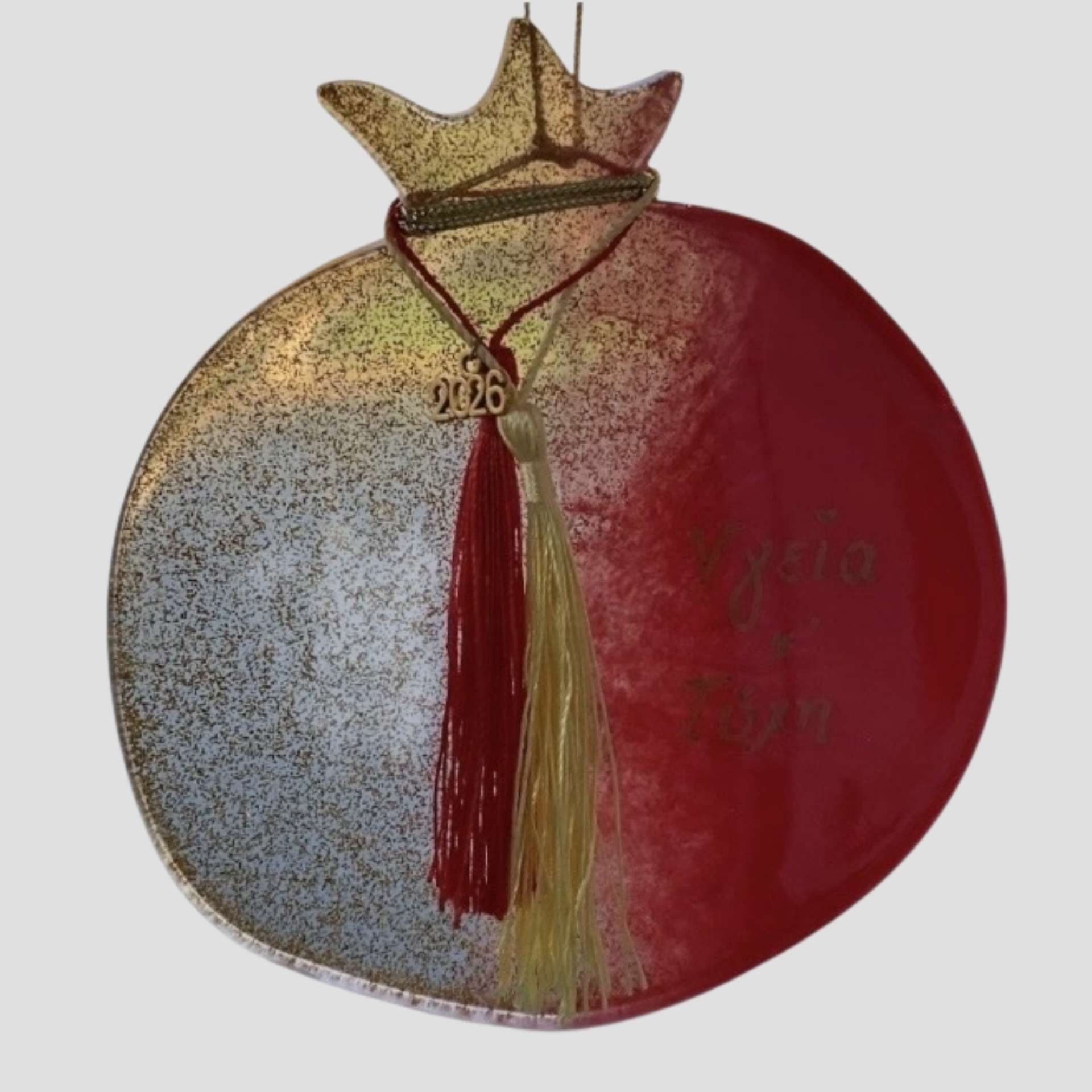 Γούρι – Ρόδι 2026 κοκκινο-διαφανές από υγρό γυαλί